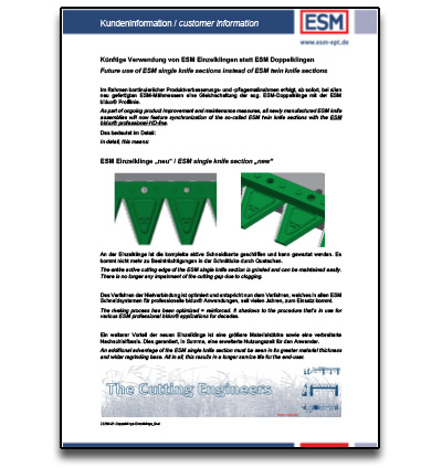 Künftige Verwendung von ESM Einzelklingen statt ESM Doppelklingen