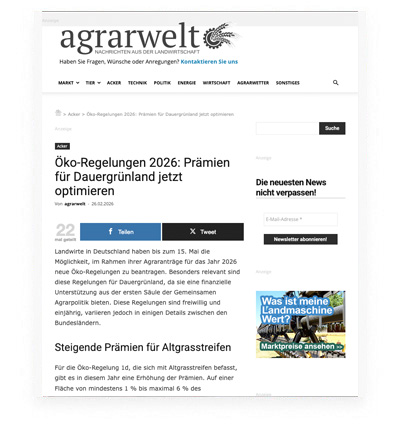 Landwirte in Deutschland haben bis zum 15. Mai die Möglichkeit, im Rahmen ihrer Agraranträge für das Jahr 2026 neue Öko-Regelungen zu beantragen. Besonders relevant sind diese Regelungen für Dauergrünland [...]